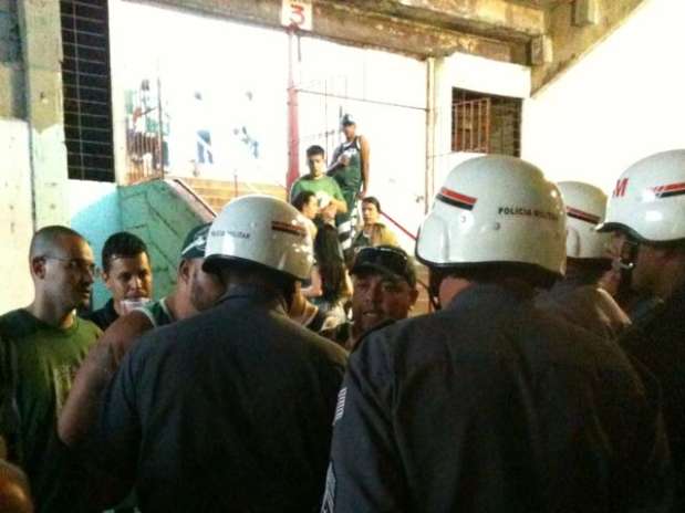 “Todos tentaram pular o porte de arma (procedimento na entrada do estádio que averigua se algum torcedor carrega arma de fogo ou arma branca para as arquibancadas) dentro do estádio. A detenção aconteceu porque um deles tentou agredir um dos nossos policiais. Outro também atirou uma garrafa”, explicou o capitão, da divisão de praças esportivas da PM.