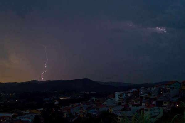 Raios caem sobre a Grande São Paulo e podem ser vistos da cidade de Guarulhos